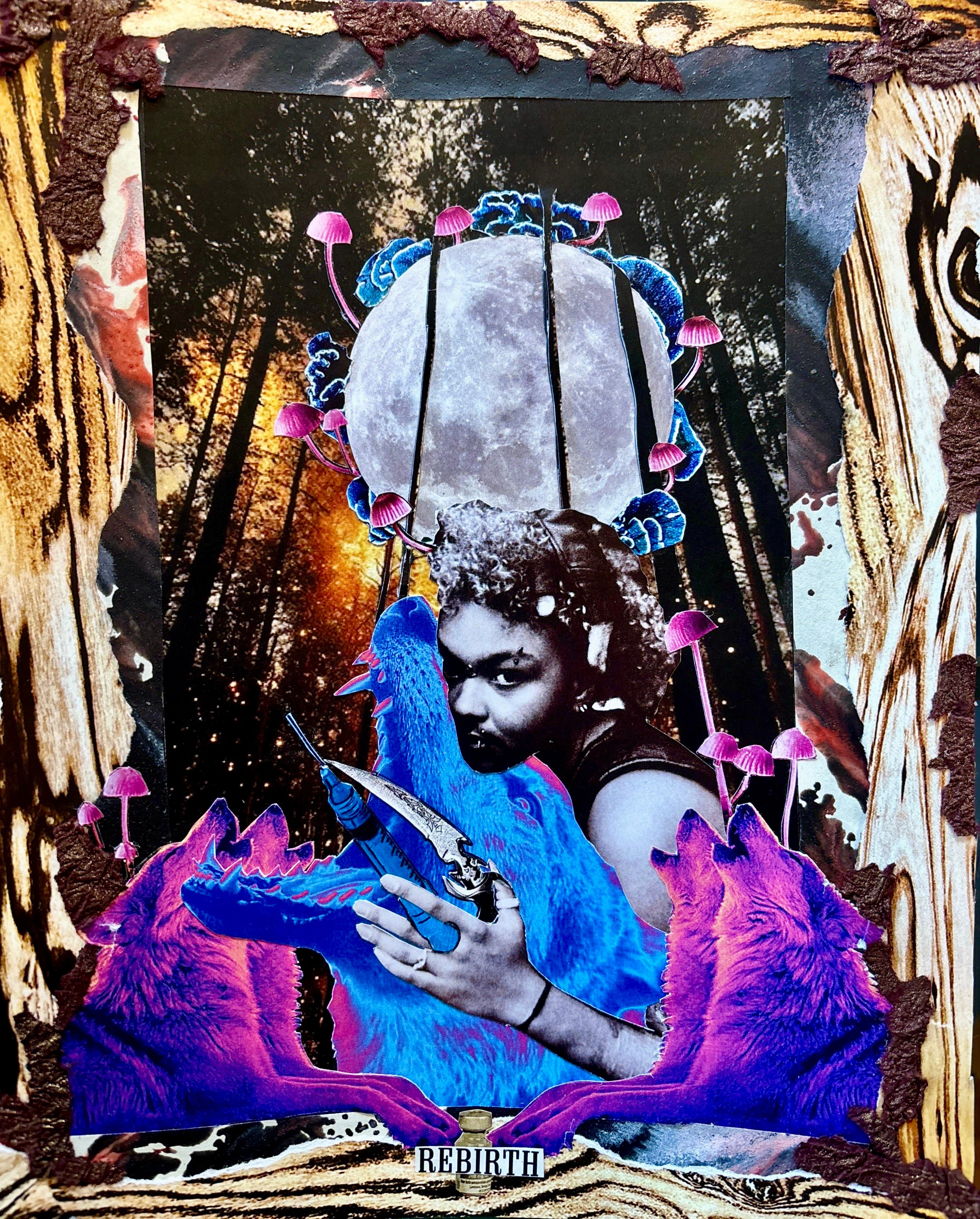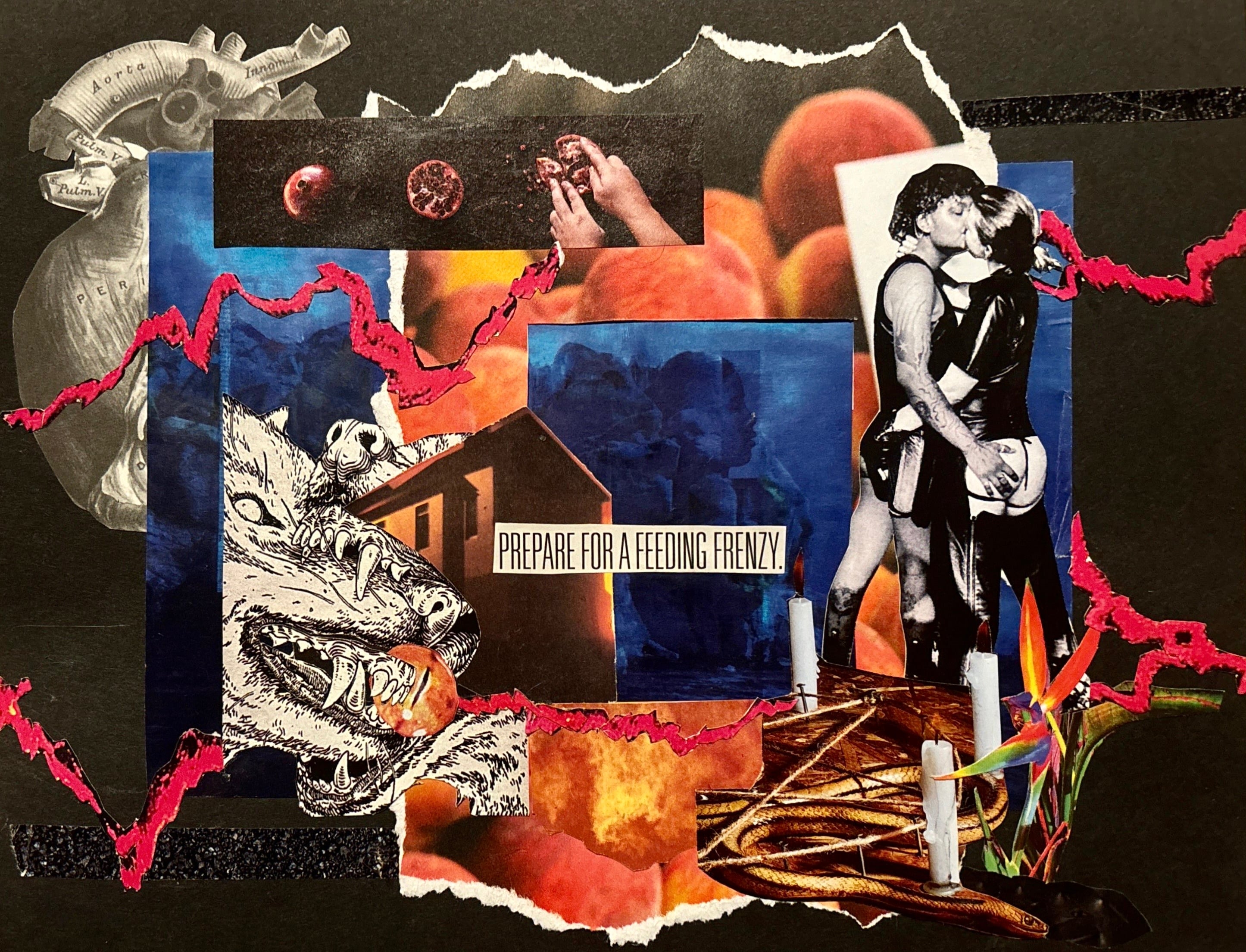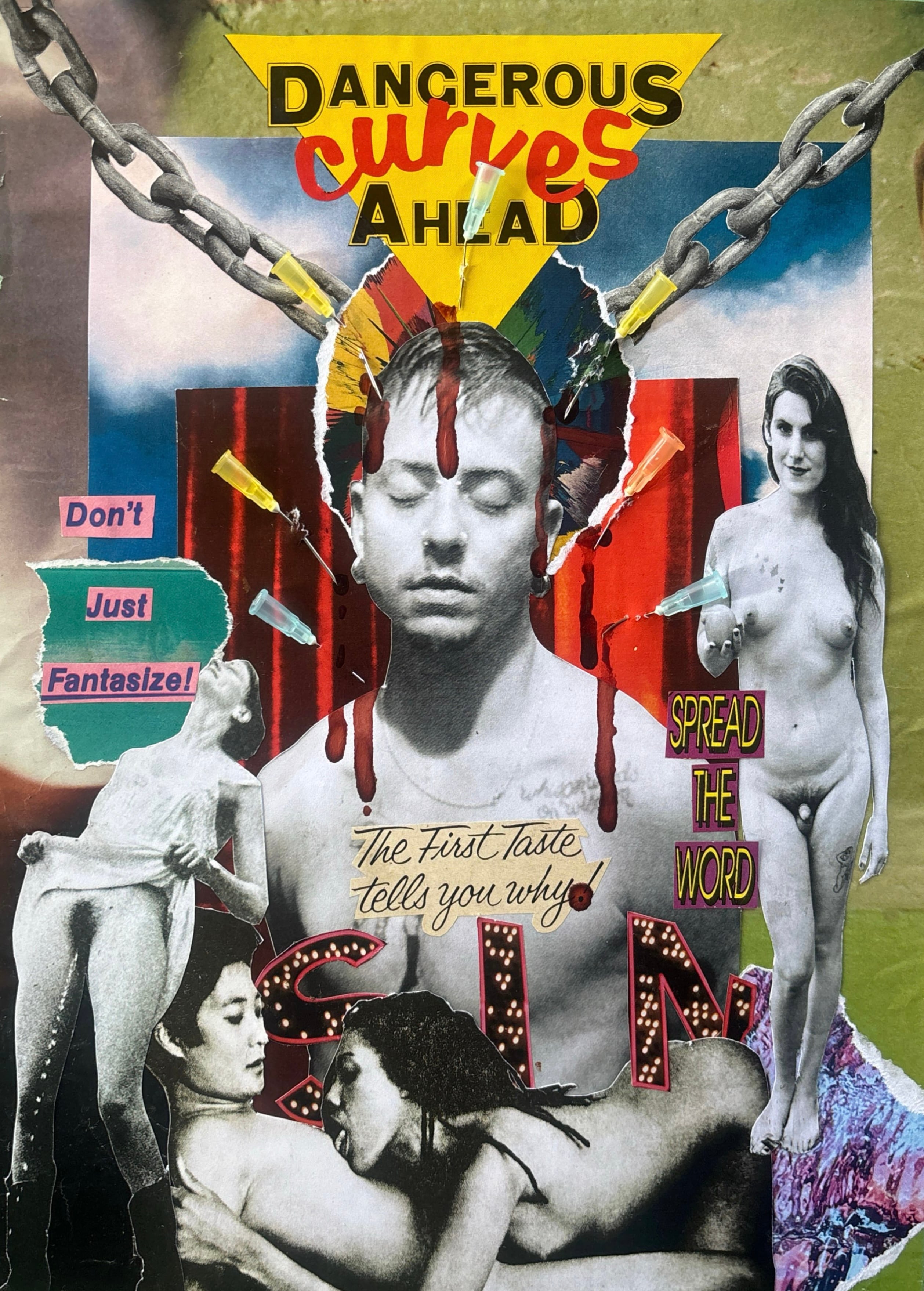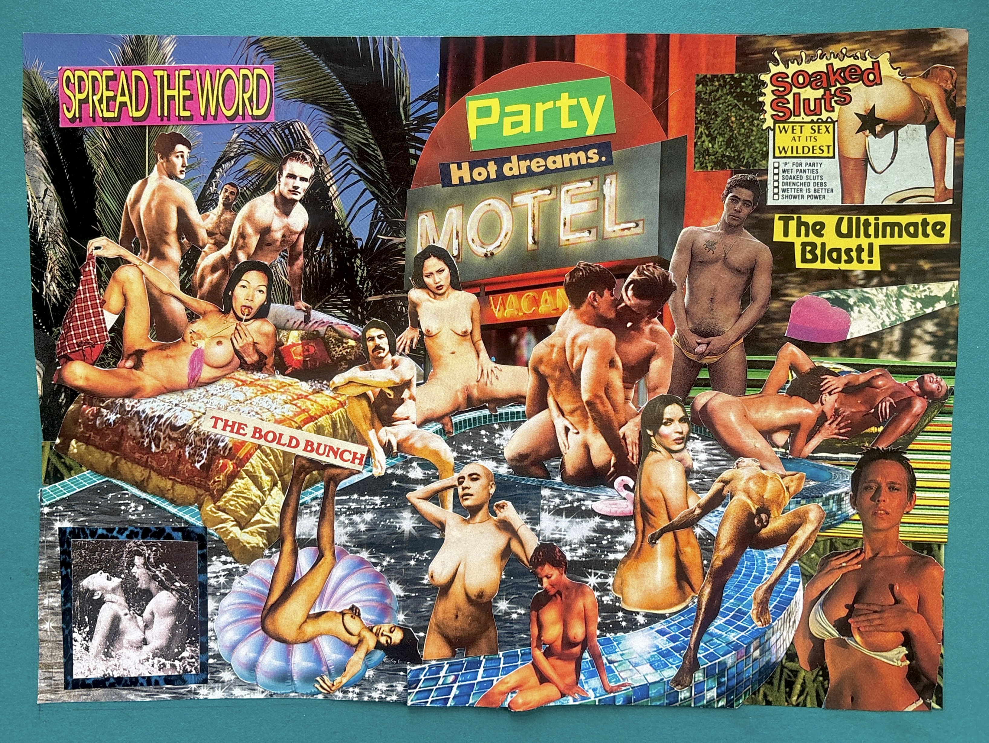 All of my materials are sourced through real media. I spend hours in archival libraries like Chicago’s own Gerber Hart & Leather Archives scanning images of queer perverts who’ve passed down the legacy we continue today.